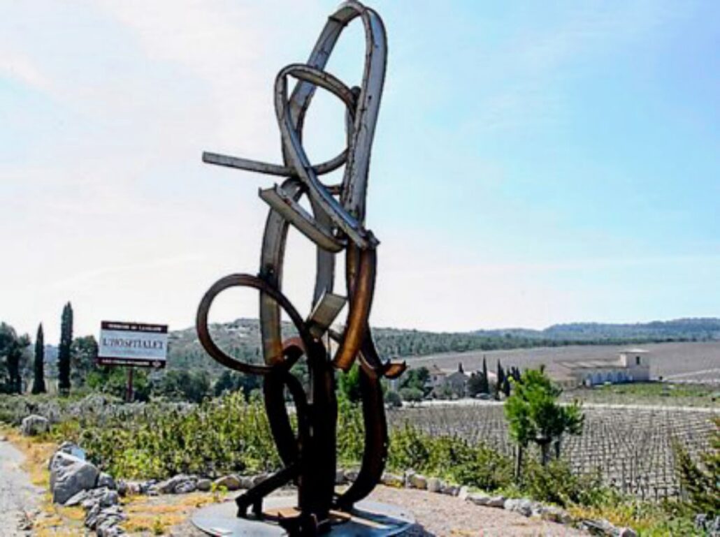 Le Domaine de l’Hospitalet, avec ses vignobles soignés et son cadre méditerranéen, offre un écrin idéal à l’œuvre. Le contraste entre le métal brut et la douceur des vignes est saisissant : le geste de Rives dialogue avec le paysage, transformant un détour routier en moment suspendu, presque méditatif. (juillet 2010)