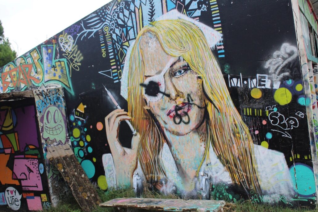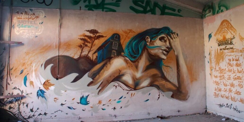 Parmi les artistes urbains qui ont marqué l’histoire éphémère de l’ancien sanatorium du Grau-du-Roi, le nom de Supo Caos revient avec force. Avant sa démolition, ce lieu abandonné était devenu une véritable galerie à ciel ouvert, où ses fresques se distinguaient par leur puissance visuelle et leur univers singulier. Figures hybrides, visages expressifs, couleurs intenses : son style laissait une empreinte reconnaissable entre toutes, transformant les murs décrépits en toiles vibrantes.