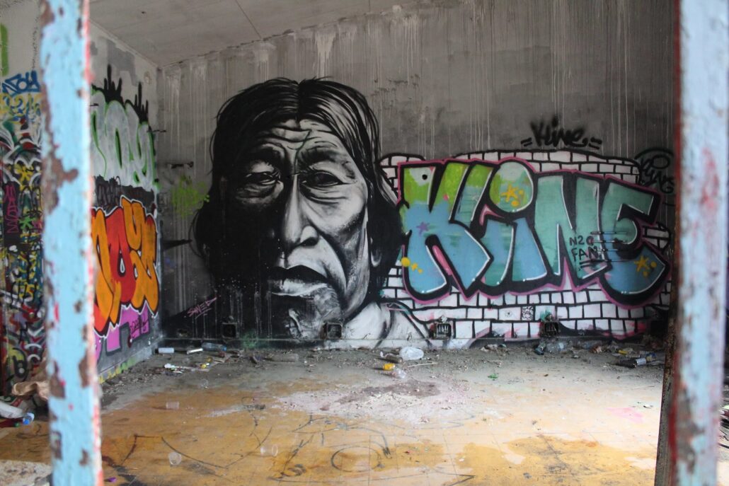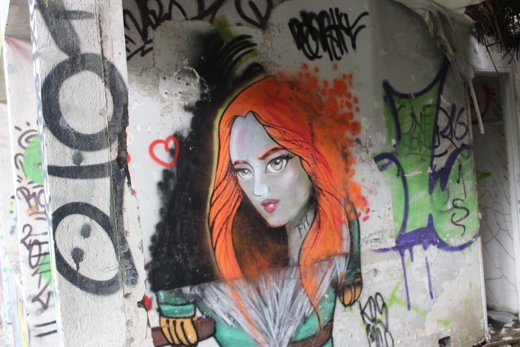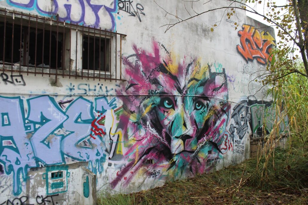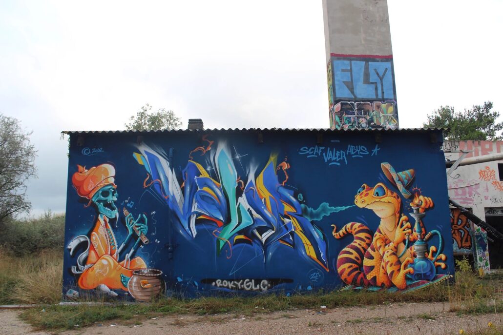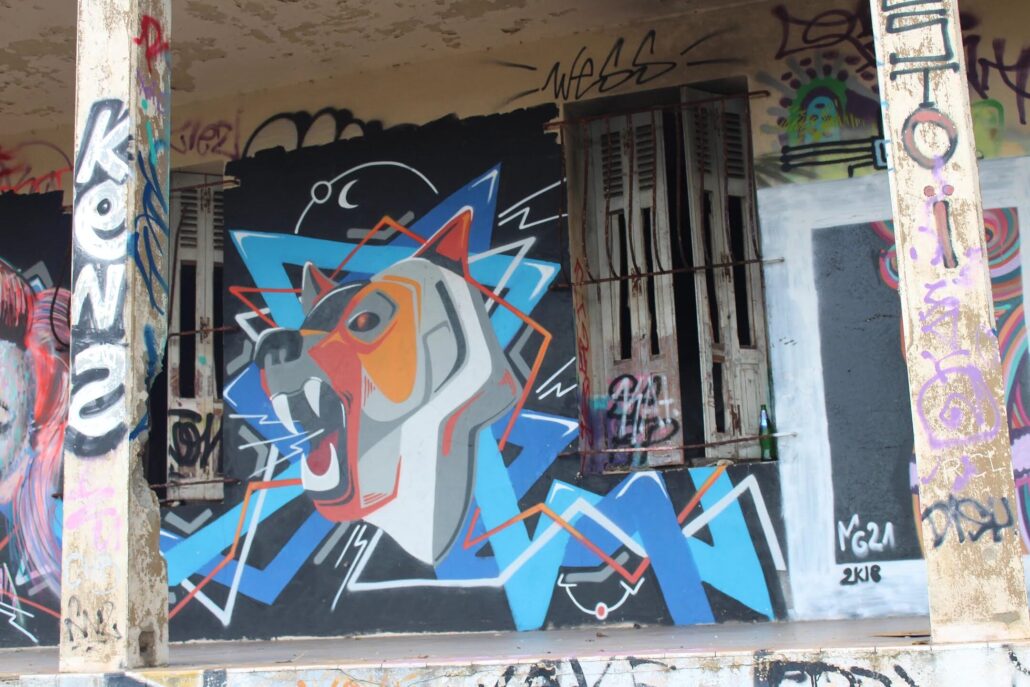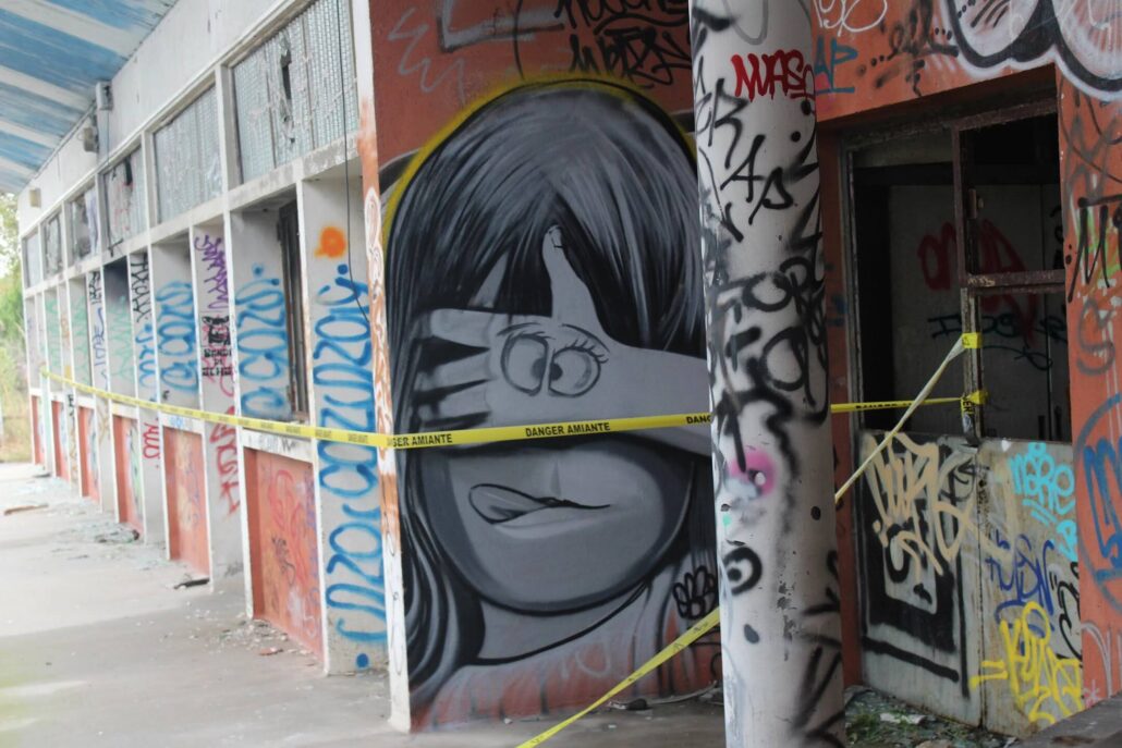 Parmi les artistes urbains qui ont marqué l’histoire éphémère de l’ancien sanatorium du Grau-du-Roi, le nom de Supo Caos revient avec force. Avant sa démolition, ce lieu abandonné était devenu une véritable galerie à ciel ouvert, où ses fresques se distinguaient par leur puissance visuelle et leur univers singulier. Figures hybrides, visages expressifs, couleurs intenses : son style laissait une empreinte reconnaissable entre toutes, transformant les murs décrépits en toiles vibrantes.