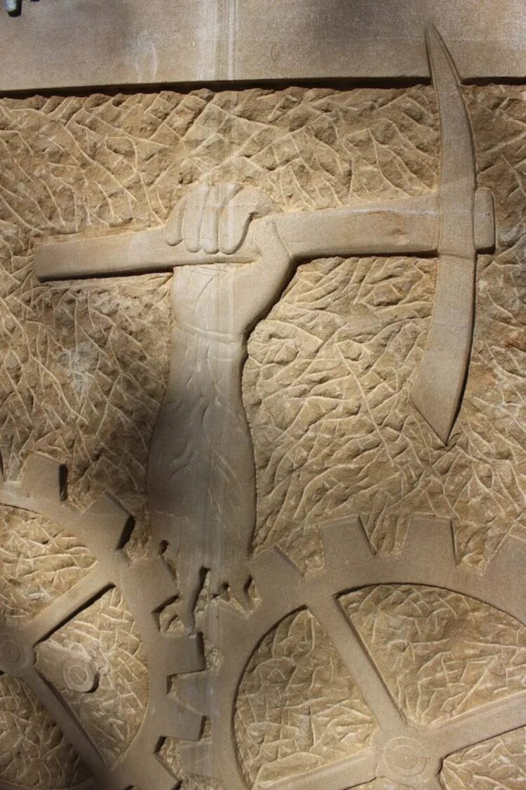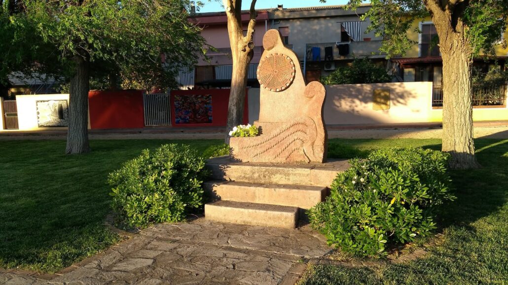 Ces créations accompagnent la présence du monument déjà érigé en mai 2011 par le sculpteur Pino Pinna de Serramanna, elle représente une Déesse Mère avec, sur le devant, une Pintadera (symbole du pain) et un bas-relief représentant une roue dentée (symbole du travail). Au pied de la statue se trouve la figure d’un Ange Déchu, symbole des ouvriers morts dans l’exercice de leurs fonctions.