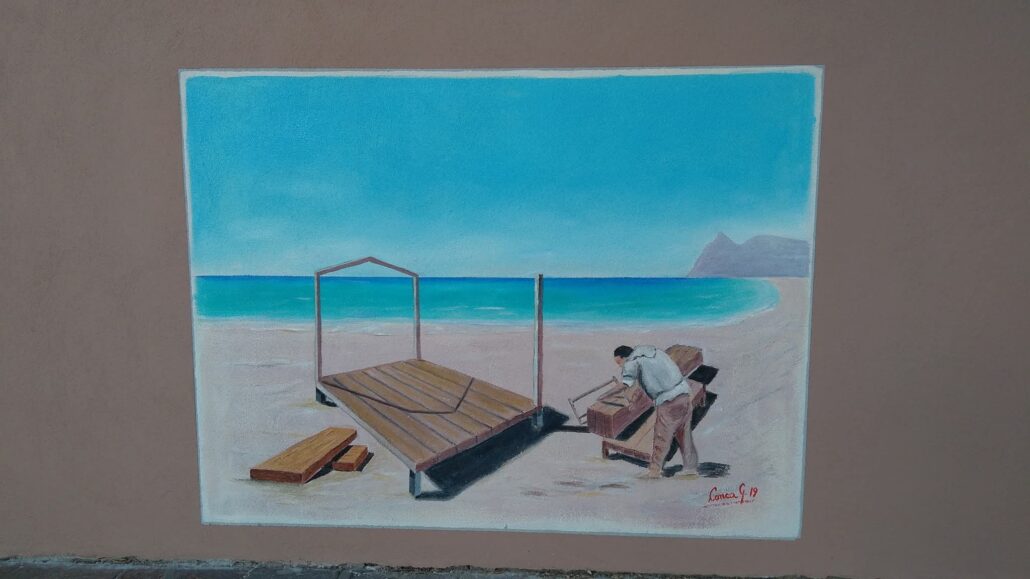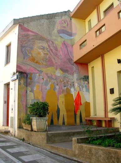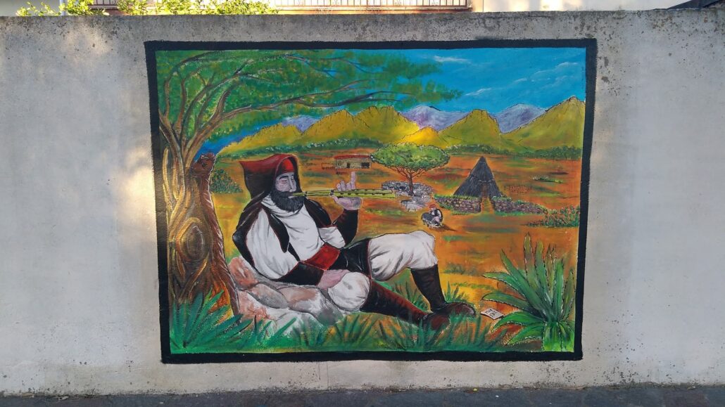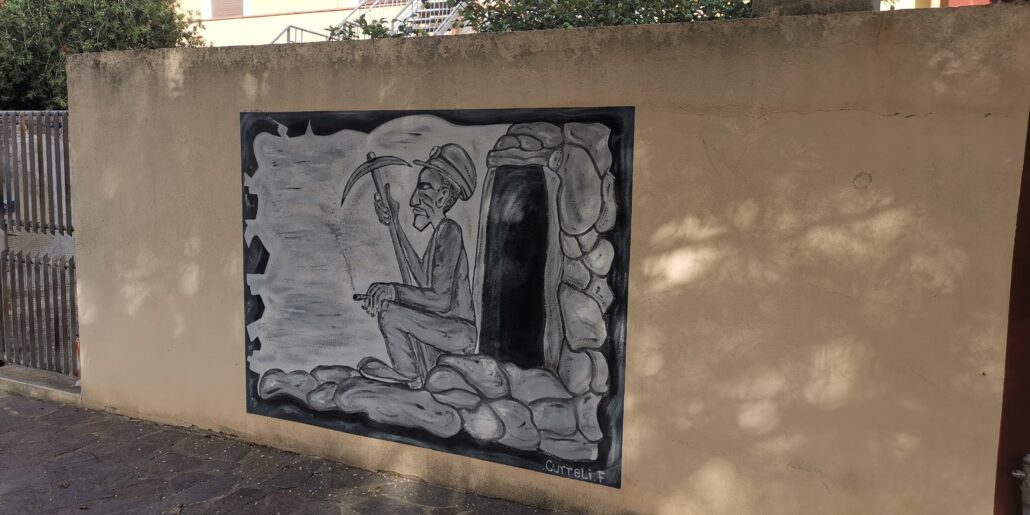 Le mur raconte sans détour l’histoire de milliers de Sardes contraints de quitter leur terre natale. Ici, l’émigration n’est pas présentée comme une chance, mais comme une contrainte, une véritable déportation sociale. Cette fresque, véritable manifeste collectif, garde toute sa force plus de quarante ans après sa création.
