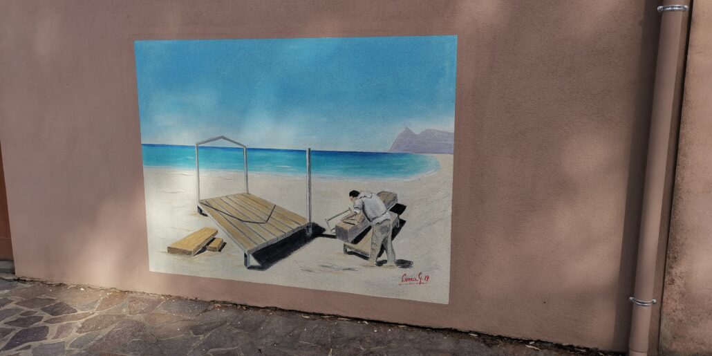 Deux ans plus tard, en octobre 2021, je me rends à Serramanna. Sur la Piazza Caduti sul Lavoro, les fresques sont toujours là,