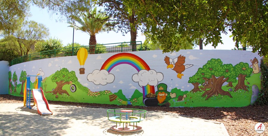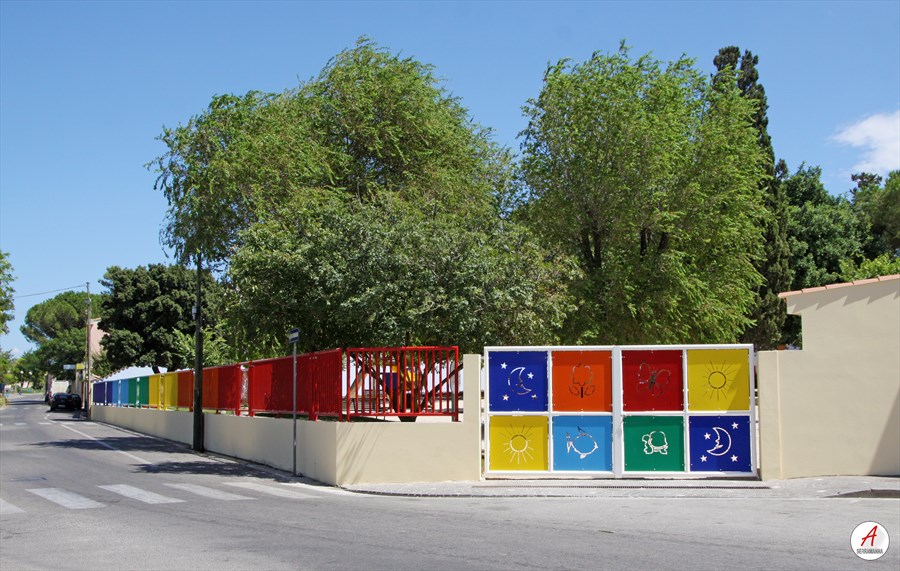 Aire de jeux municipale de L’Arcobaleno très colorée.