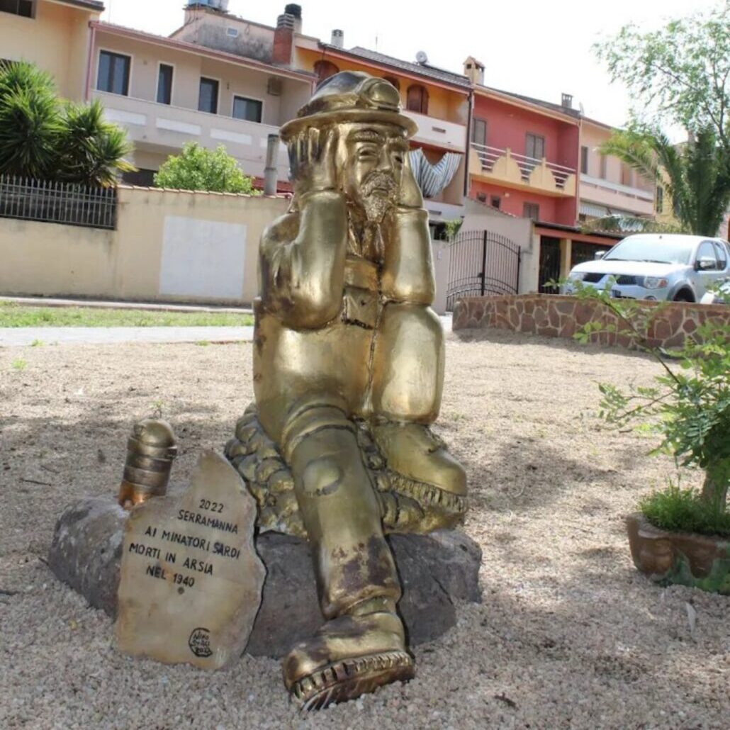 En 2022, un nouvel hommage est venu enrichir la mémoire ouvrière de Serramanna : une statue représentant un mineur assis, le visage marqué par la douleur, coiffé de son casque et accompagné d’une lampe de mineur. Cette œuvre commémore la tragédie d’Arsia, en Istrie, survenue en 1940, où plus de 180 travailleurs perdirent la vie dans une explosion souterraine, dont une majorité de Sardes envoyés sur ce site minier. L’inscription gravée sur la stèle voisine – « Ai minatori sardi morti in Arsia nel 1940 » – rappelle le sacrifice de ces hommes, et fait écho aux autres monuments de la ville qui honorent la mémoire des travailleurs disparus.