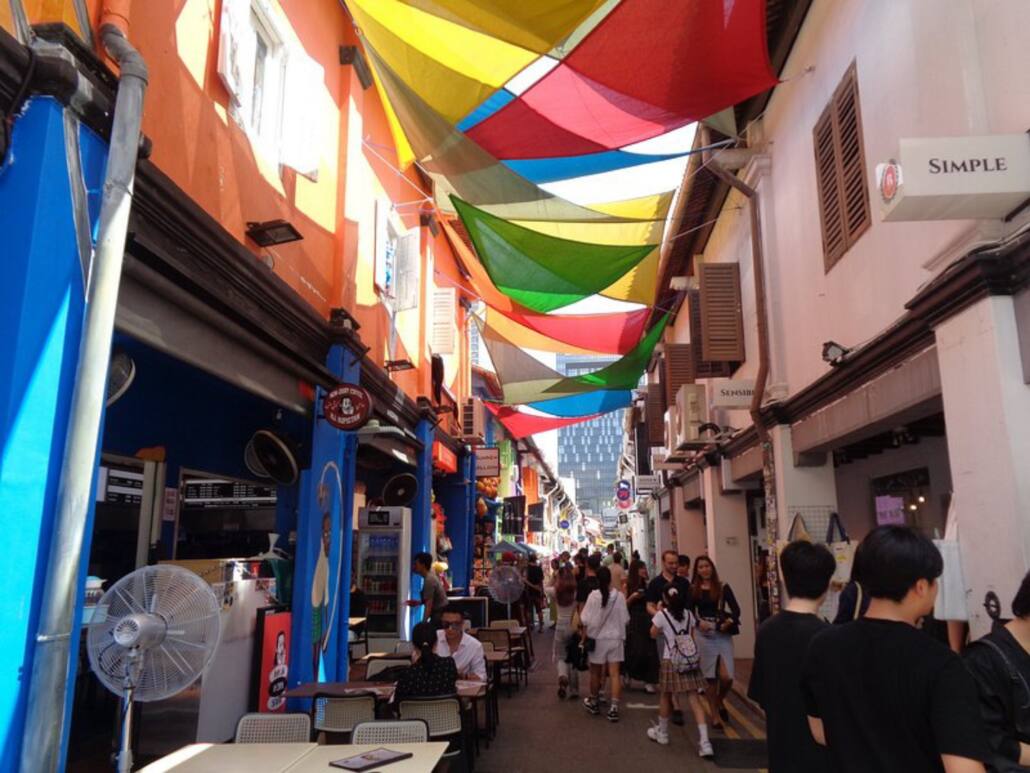 - Arab Street: une rue parallèle à Haji Lane avec des boutiques de tapis, de tissus et d’habits traditionnels