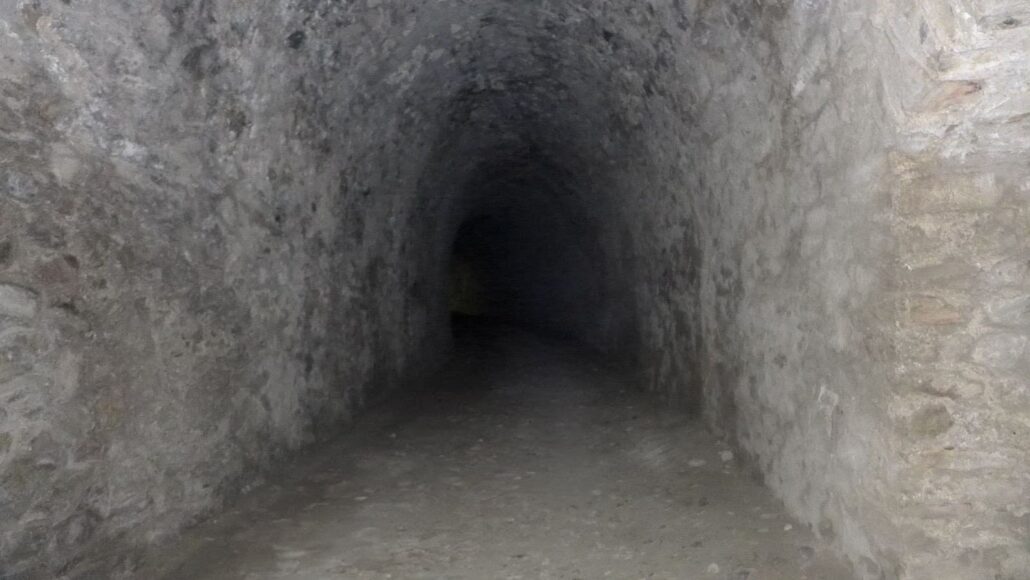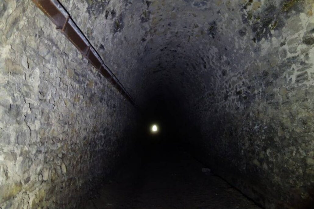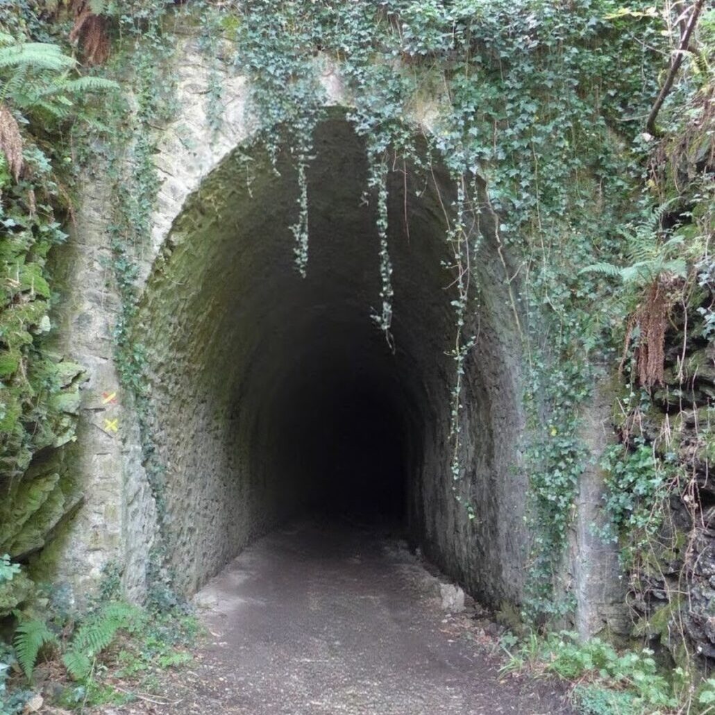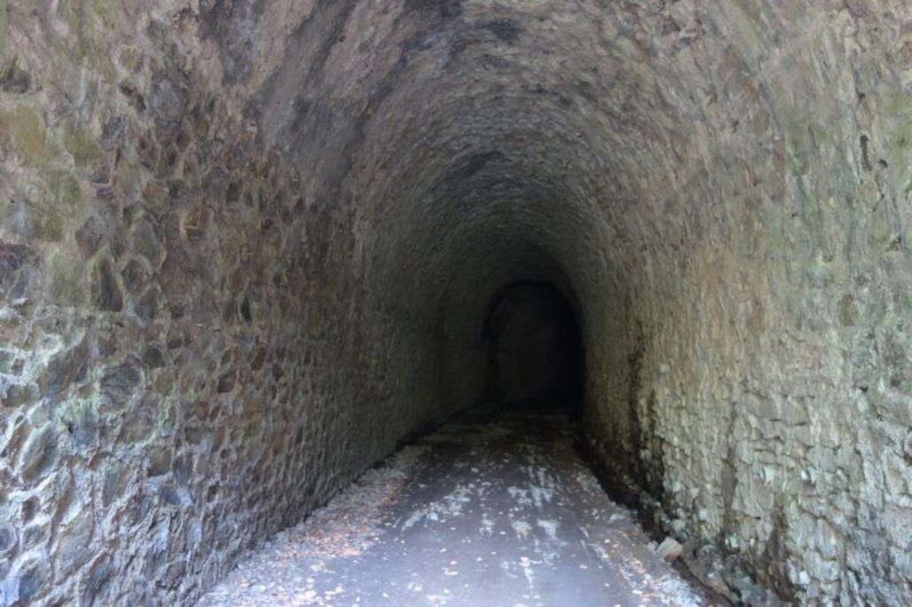 La fraîcheur y est immédiate, et l’air chargé d’humidité porte encore l’écho des roues de l’ancien petit train. Les murs, irréguliers et humides, sont parfois recouverts de mousse ou de lichens, témoins d’un temps où le passage humain était fréquent. Avancer dans ce corridor étroit est comme un voyage dans le temps.