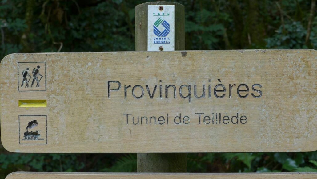 Tout commence par un sentier entouré de pierres plantées : c’est le chemin de Provinquières, qui autrefois reliait le village à la halte de Lacrouzette-Provinquières, desservie à l’époque par le petit train.