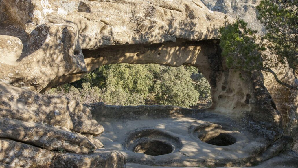 Ce site troglodytique, creusé dans la falaise calcaire, abritait jadis un village tout entier. Une soixantaine de cavités y ont été taillées à même la roche : habitations, silos, citernes et escaliers témoignent de la vie quotidienne de ces hommes qui avaient choisi la pierre pour refuge.