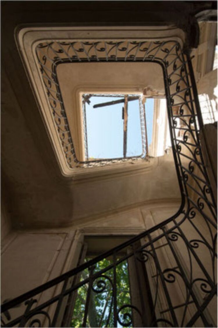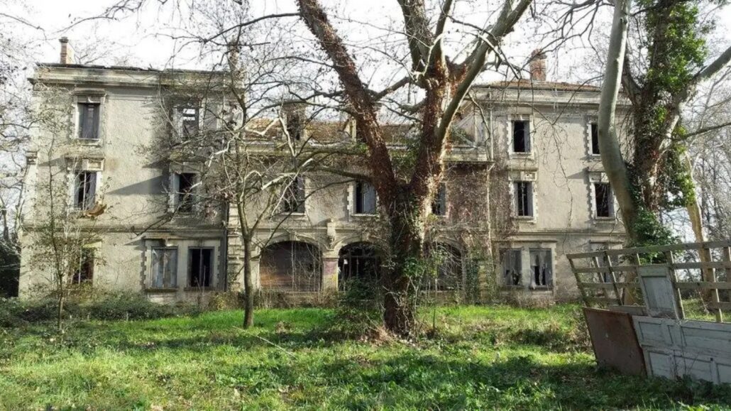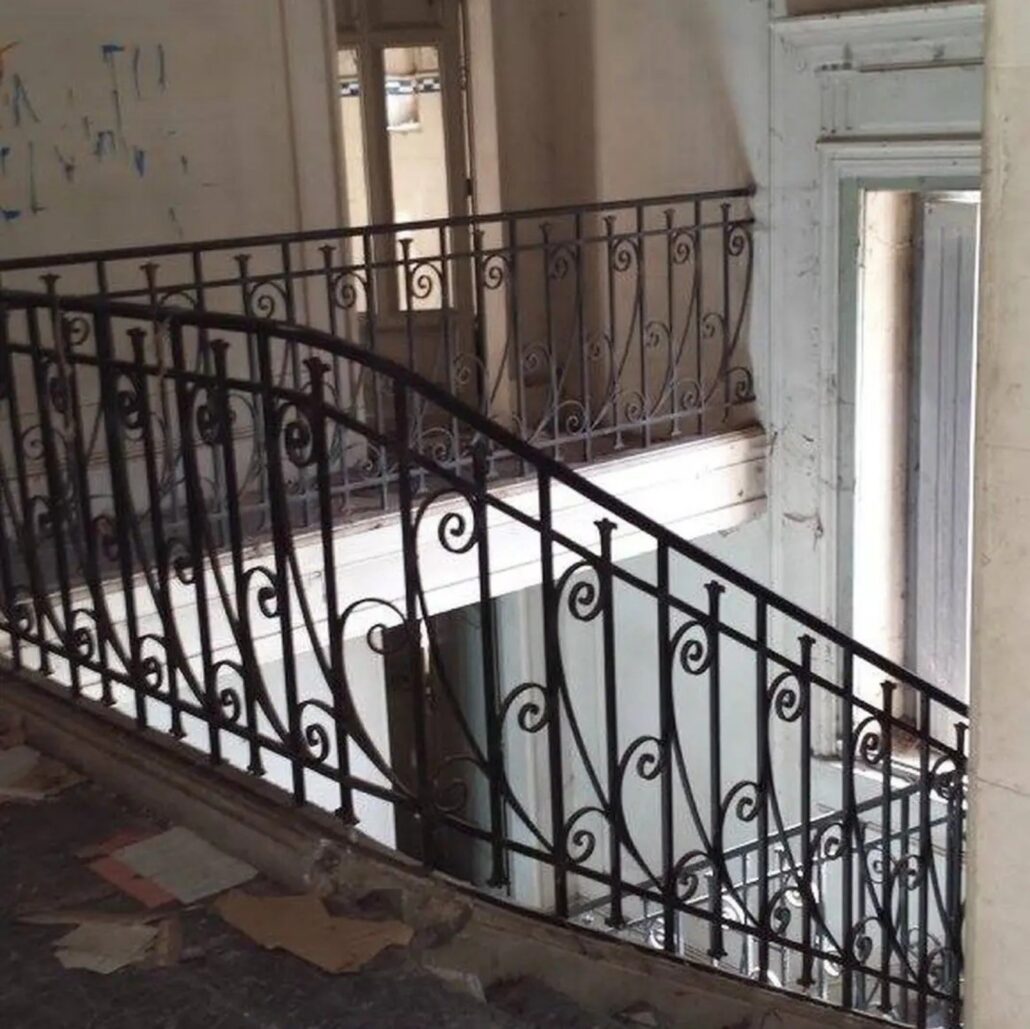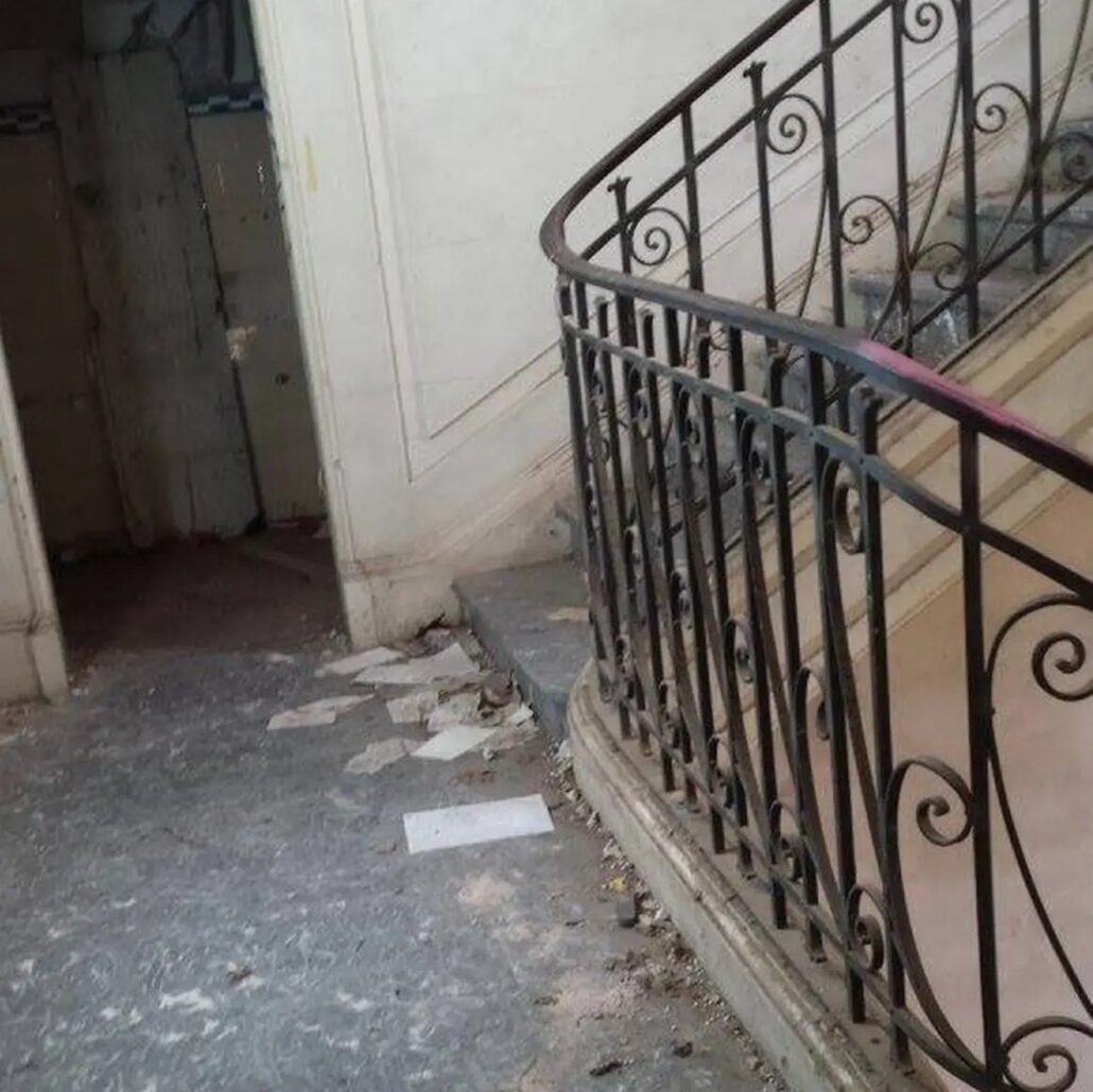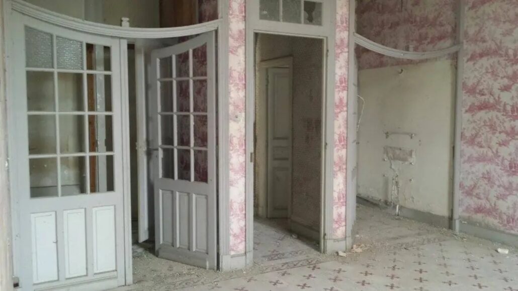 Un long couloir mène vers une aile plus sombre, où un escalier s’élève sur plusieurs niveaux, comme s’il refusait de s’avouer vaincu par les ans.