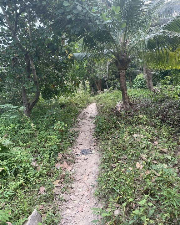 Nous avons passé quelques heures à profiter du soleil et du silence, même si, hélas, la plage était jonchée de déchets plastiques, contrairement aux sites plus fréquentés qui sont nettoyés chaque matin. La faim se faisant sentir et l’absence totale de points de vente sur place nous ont contraints à rebrousser chemin. Sur le retour, un panneau indiquant « raccourci Ton Sai » nous a permis de longer la côte et de rejoindre le village en seulement une demi-heure.