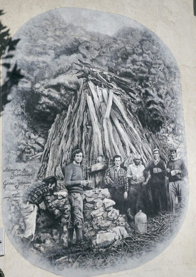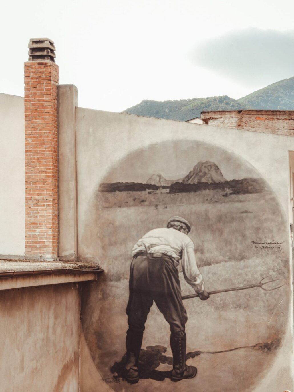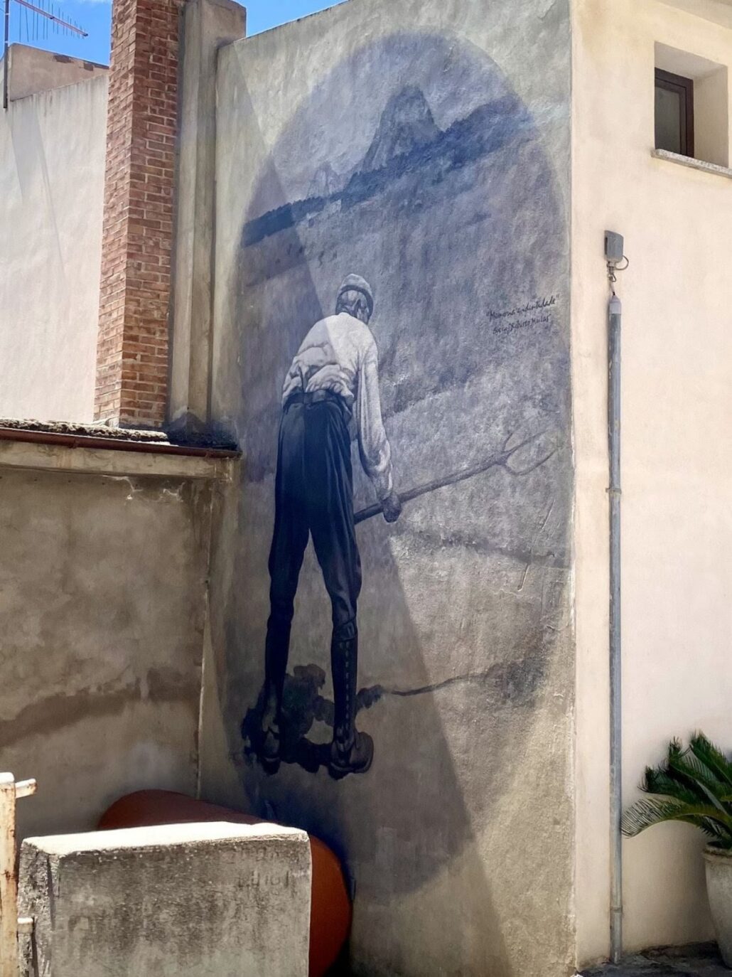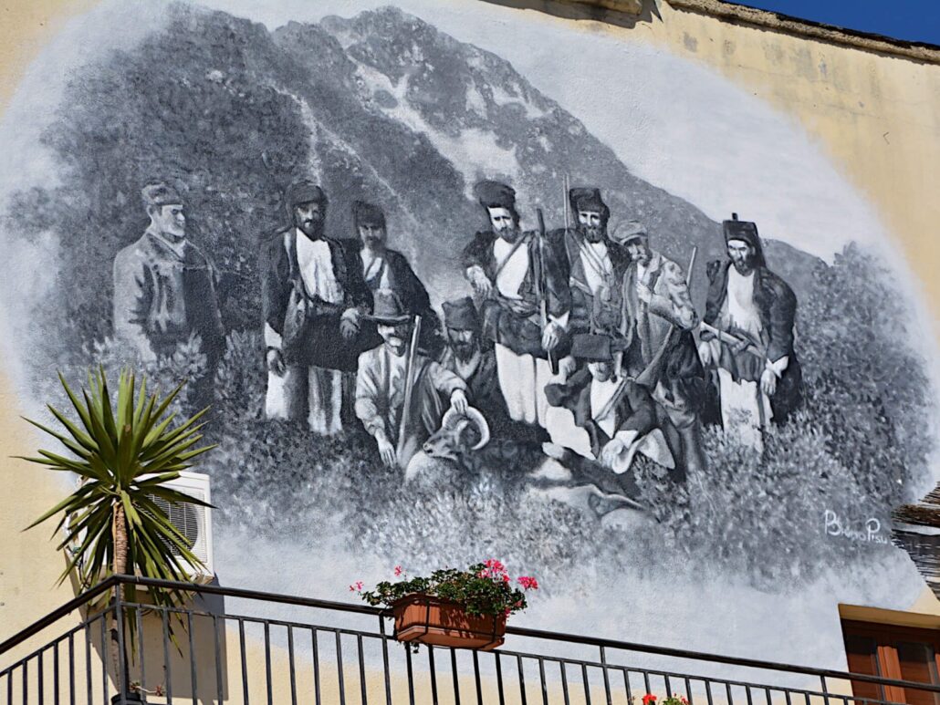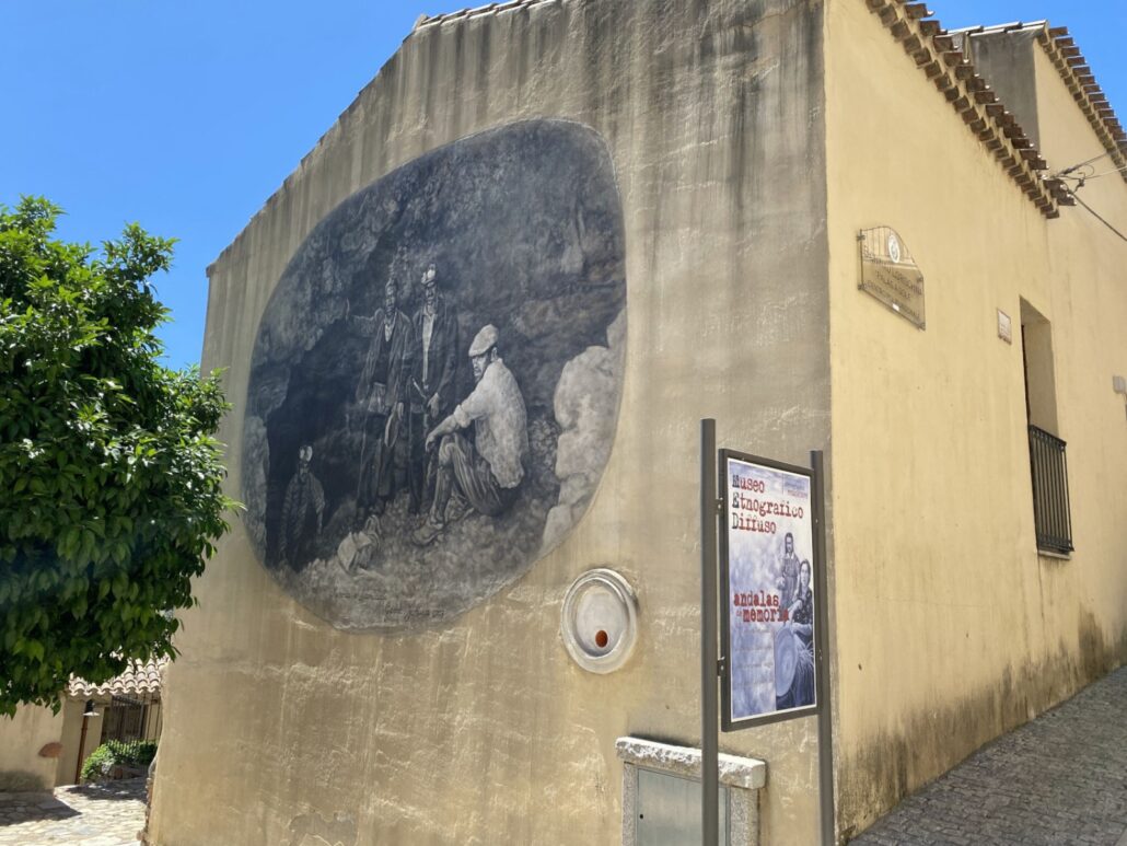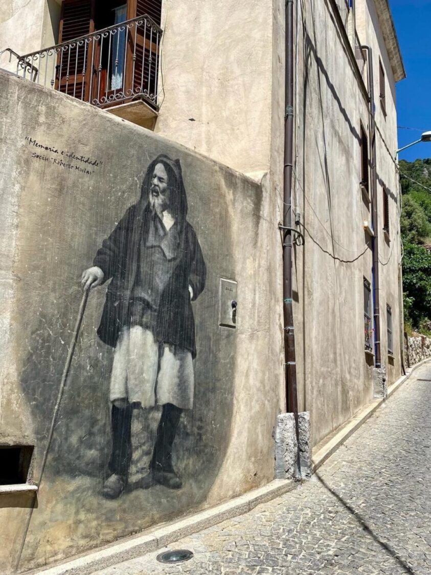 Les fresques, presque toutes en noir et blanc, ont été réalisées par des artistes sardes, souvent originaires du village. Elles représentent des scènes de vie rurale, des traditions, des gestes simples, parfois la figure du bandit. Peu de femmes, peu de scènes domestiques. L’essentiel est ailleurs : dans les regards, les postures, la dignité.