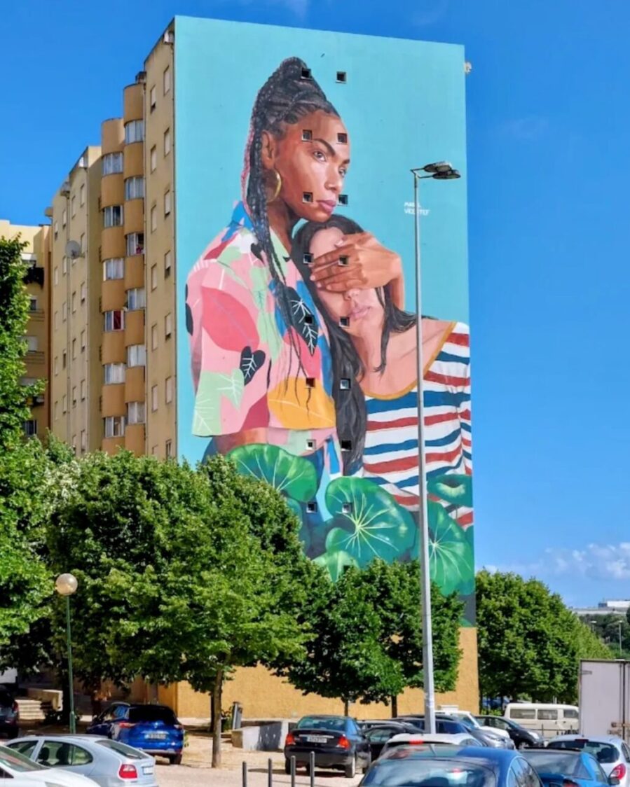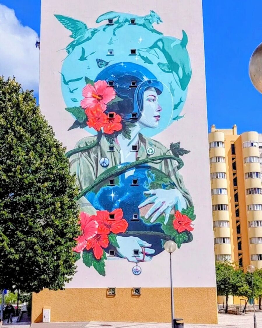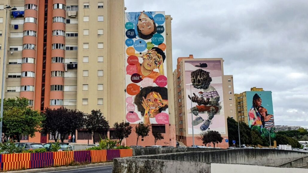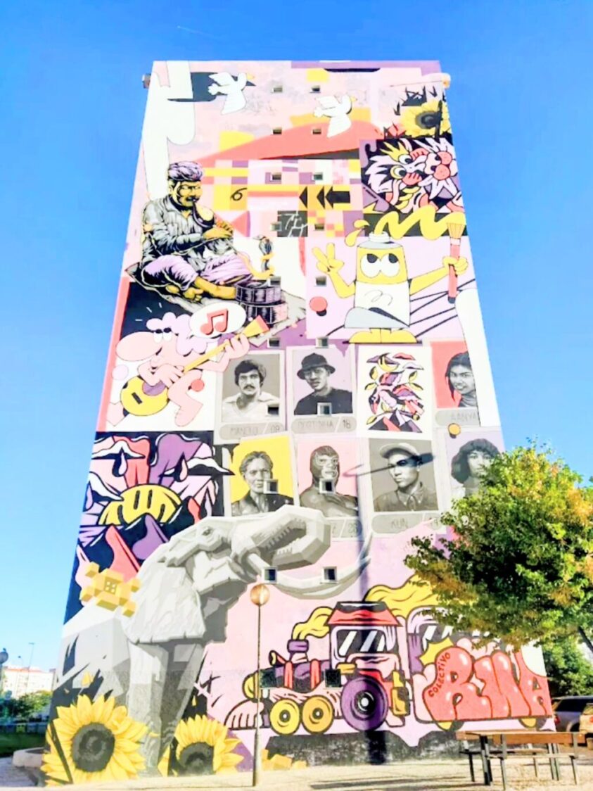 Dans le cadre du festival d’art urbain MURO LX 2021, le street art a fleuri autour du Parque das Nações, notamment dans le quartier de Casal dos Machados, étape incontournable du festival.